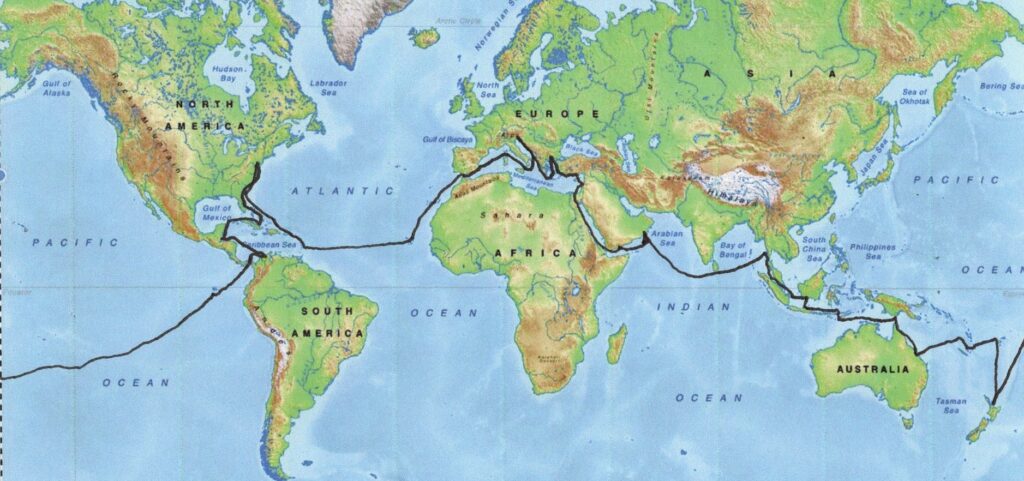 “The day we bought the wind vane steerer we really didn’t have a plan. As a matter of fact, we never really had a plan. We just thought, let’s head out in a generally westerly direction for a couple of years and see what happens. We imagined we would be gone for three years, maximum, vaguely thinking about a circumnavigation but not committed and certainly NOT telling anyone we planned to sail around the world.”